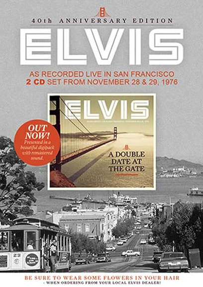 On November 28 & 29, 1976 Elvis performed two shows at the Cow Palace in the flower-city San Francisco. These shows have been regarded as some of Elvis' finest performances during this busy bicentennial year for The King. Gathered here in a beautiful 2-disc digipack, Elvis : Double Date At The Gate, is both shows in excellent quality. Unfortunately, the sound engineer was not able to capture the whole shows while recording, but on this release, you will find every second that was captured. The sound on both shows has been remastered by professionals and has never sounded better. Period.